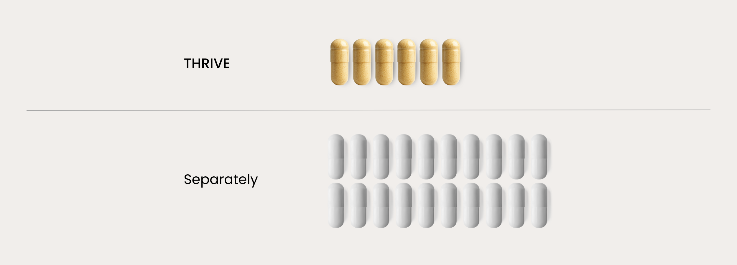 THRIVE saves you $45 per month compared to taking each ingredient separately.