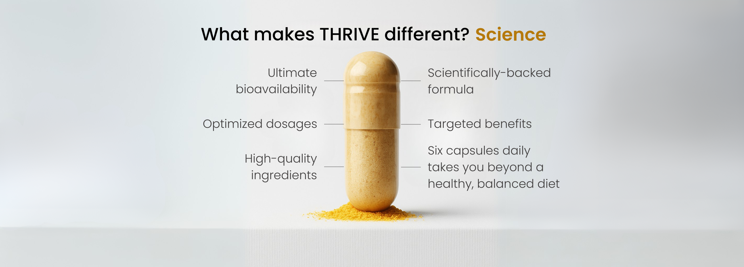 Most supplements are designed to meet RDA minimums and avoid deficiency diseases. THRIVE is designed for peak cellular performance.